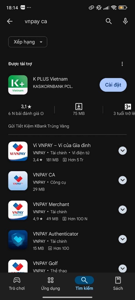 - Vào CH Play, tìm kiếm VNPAY-CA