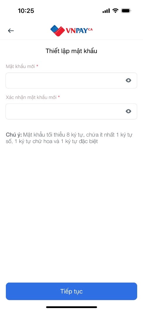 - Nhập mật khẩu mới và nhập lại mật khẩu mới để thiết lập mật khẩu