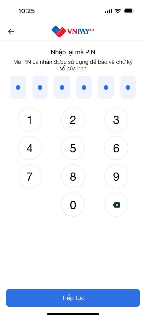 - Nhập lại mã PIN cá nhân để thiết lập mã PIN