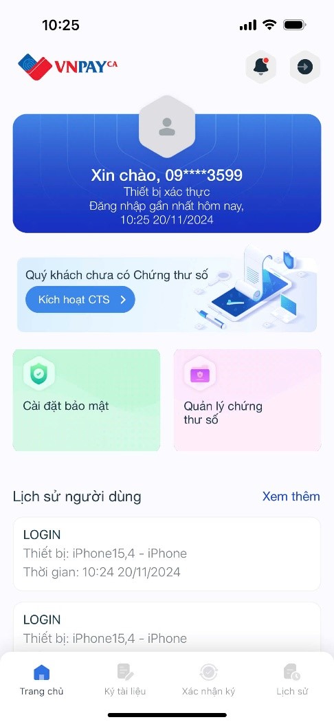 Bước 6: Ứng dụng điều hướng đến màn hình Trang chủ và thông báo kích hoạt tài khoản thành công