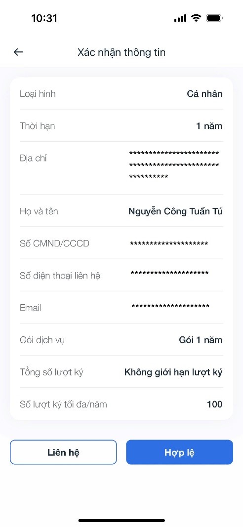 - Nếu thông tin chính xác thì chọn Hợp lệ